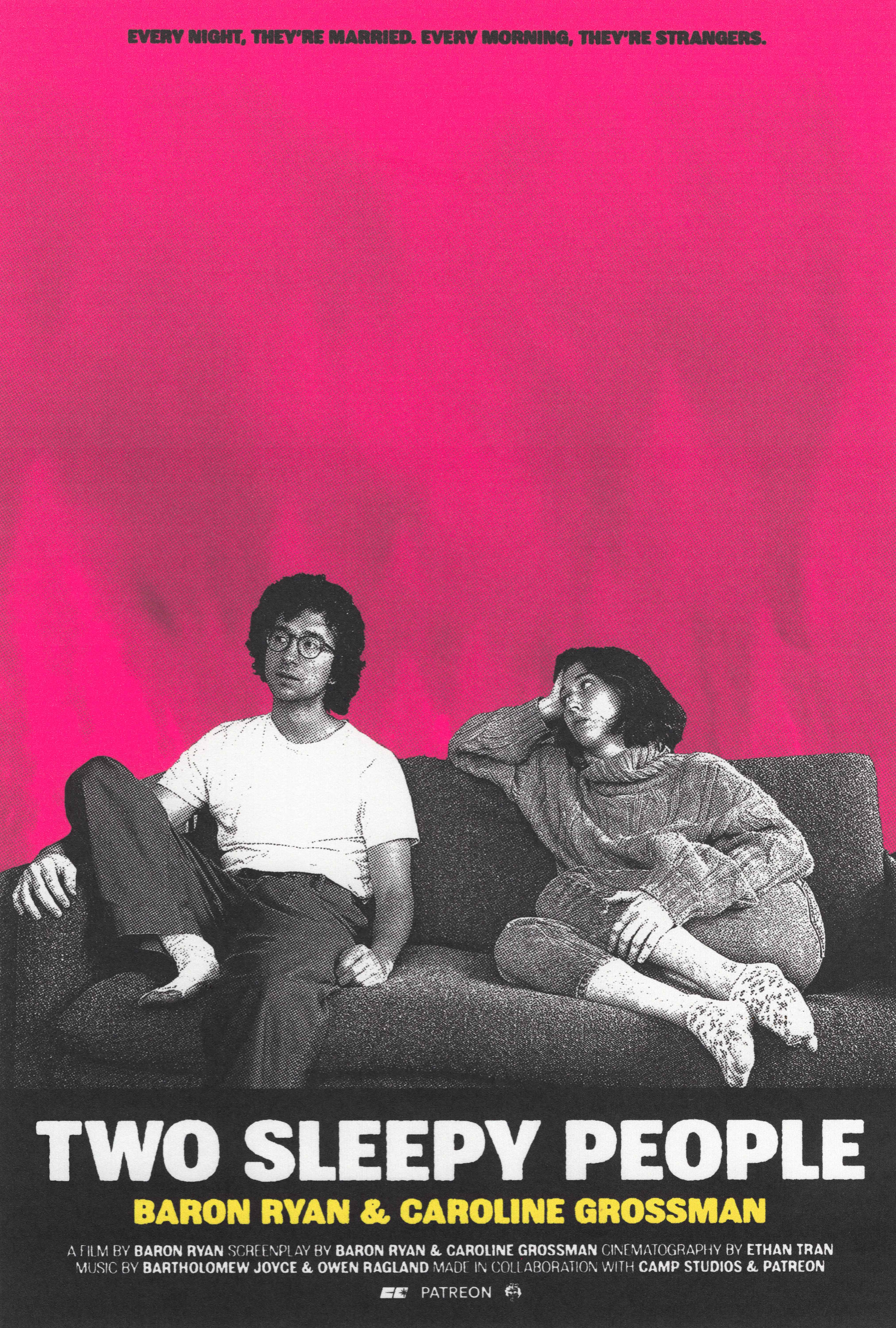 Official movie poster design and merch graphics for "Two Sleepy People," a feature film by Baron Ryan. A dreamy movie about the funny misfortune between our ideal selves and our actual selves. Premiere at the Camp Film fest in partnership with Patreon.
